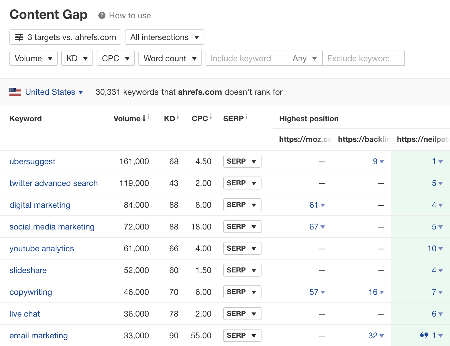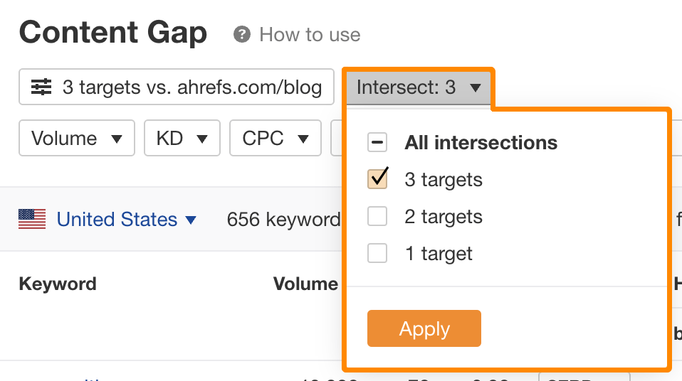 شکاف محتوا کلمات کلیدی را پیدا میکند که سایر وبسایتها رتبهبندی میکنند، اما شما این کار را نمیکنید. . بیشتر ابزارهای بزرگ سئو دارای یکی هستند، اما همانطور که شما در حال خواندن وبلاگ Ahrefs هستید، ما با وبلاگ خود نشان خواهیم داد.