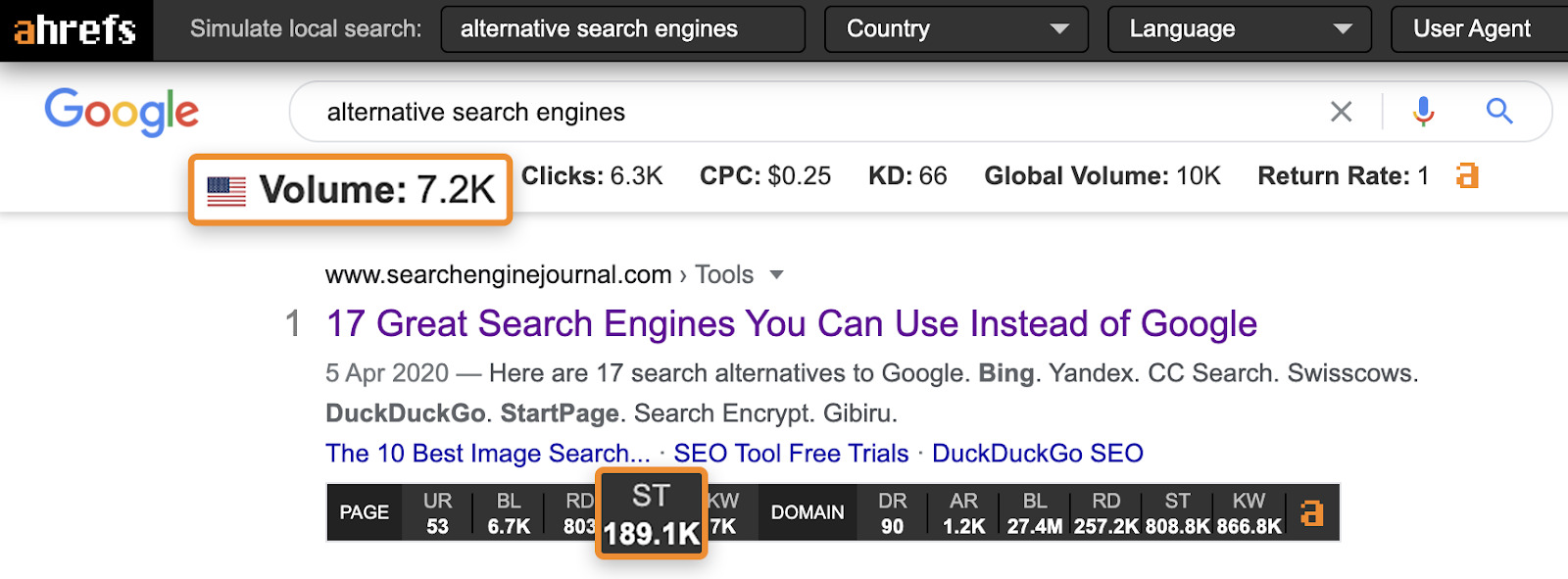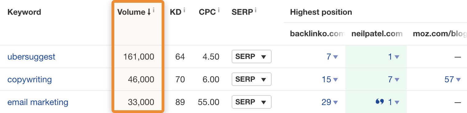 اگرچه کلمه کلیدی فقط 7.2 هزار جستجو در ماه دریافت می کند، صفحه برتر تقریباً 25 برابر ترافیک ارگانیک بیشتری دریافت می کند. دلیل آن این است که هزاران کلمه کلیدی مرتبط دیگر را رتبهبندی میکند، که در غیر این صورت به عنوان کلیدواژههای طولانی شناخته میشود. بسیاری از اینها فقط روشهای کمتر محبوبی برای جستجوی یک مورد هستند.