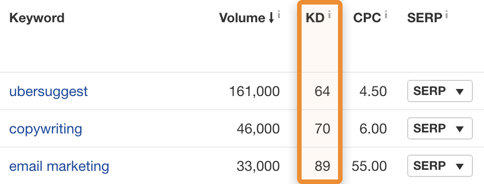 دشواری کلمه کلیدی (KD) تعداد پیوندها به صفحات با رتبه برتر را در نظر می گیرد. ، اما نه کیفیت آنها. بنابراین ارزش آن را دارد که پروفایل های بک لینک صفحات با رتبه برتر را قبل از هدف قرار دادن یک کلمه کلیدی بررسی کنید. اغلب متوجه میشوید که اگرچه یک صفحه دارای وبسایتهای زیادی است که به آن پیوند داده شدهاند، اما بسیاری از آنها کیفیت پایینی دارند—در این صورت ممکن است بالاتر از آنچه در ابتدا فکر میکردید از صفحه بالاتر باشید.
