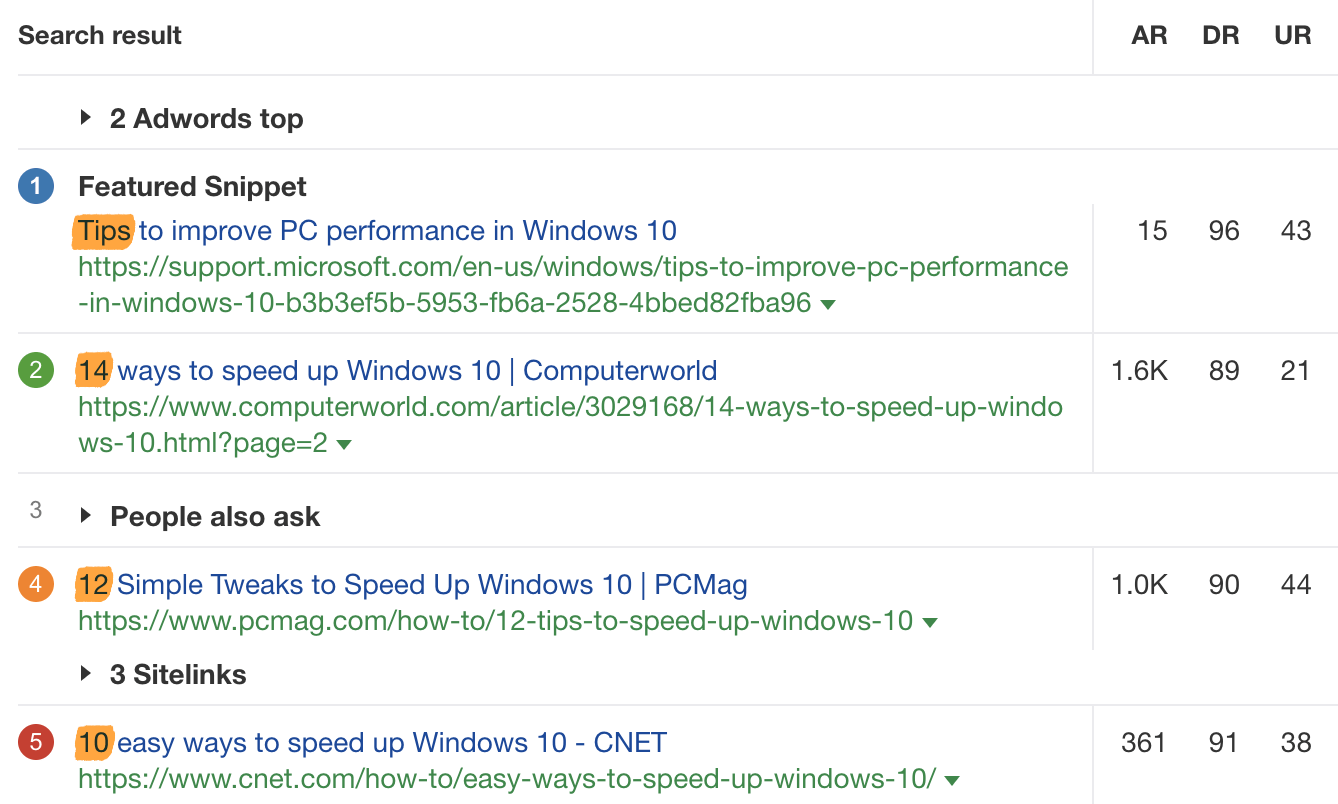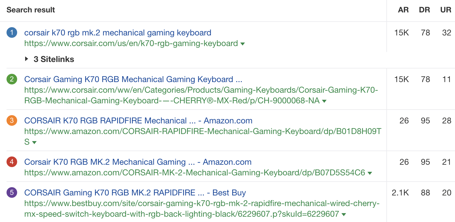 به عنوان مثال، همه نتایج برای «سرعت بخشیدن به ویندوز 10» پستهای وبلاگی به سبک فهرست هستند، در حالی که برای «corsair k70» همه صفحات محصول از فروشگاههای تجارت الکترونیک هستند. .