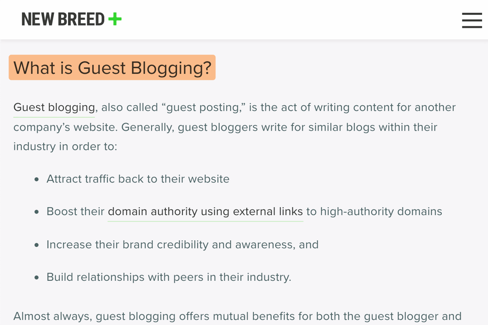 متأسفانه، ما این مورد را در راهنمای خود برای مهمان قرار ندادیم وبلاگ نویسی. تا زمانی که آن «شکاف» را پر نکنیم، بعید است که برای کلمه کلیدی هدف اصلی خود رتبه بالایی کسب کنیم. و ما مطمئناً برای موارد طولانی مانند “وبلاگ نویسی مهمان چیست” رتبه بندی نمی کنیم زیرا پست ما به این سوال پاسخ نمی دهد.